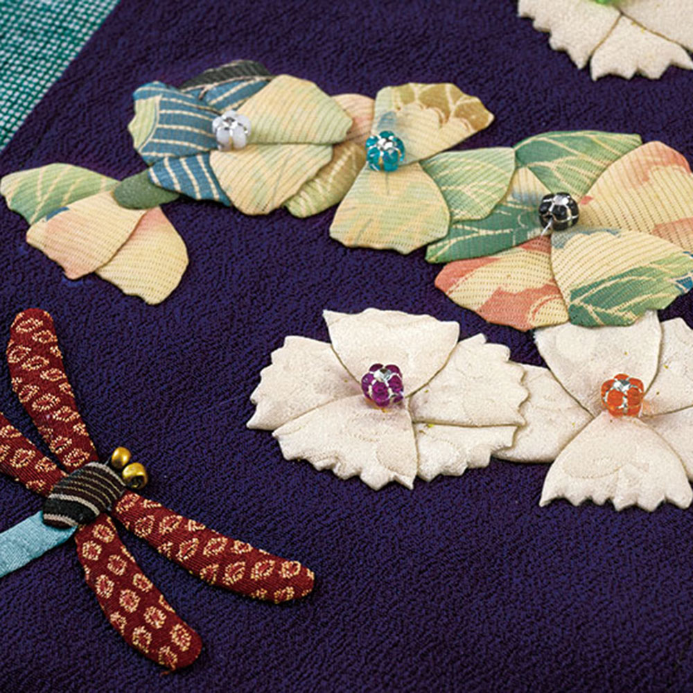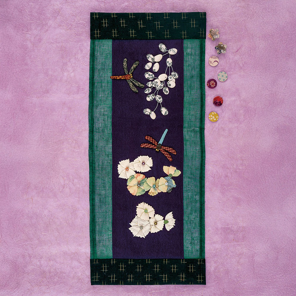 【古裂】【キット作り方つき】日本の伝統的な文様で、和のモチーフとして親しまれているトンボと撫子を押絵のタペストリーに。涼やかさや生命力を感じます。