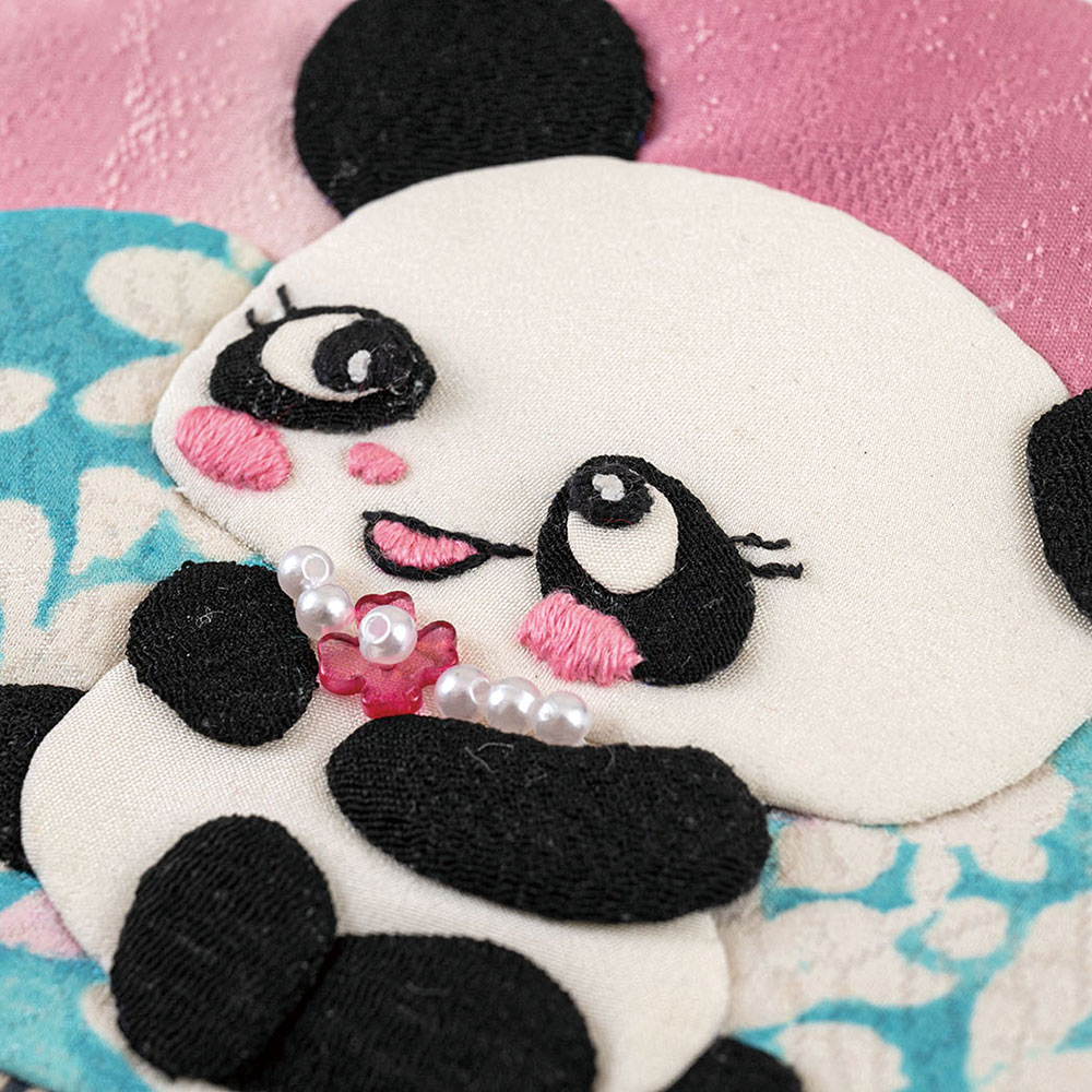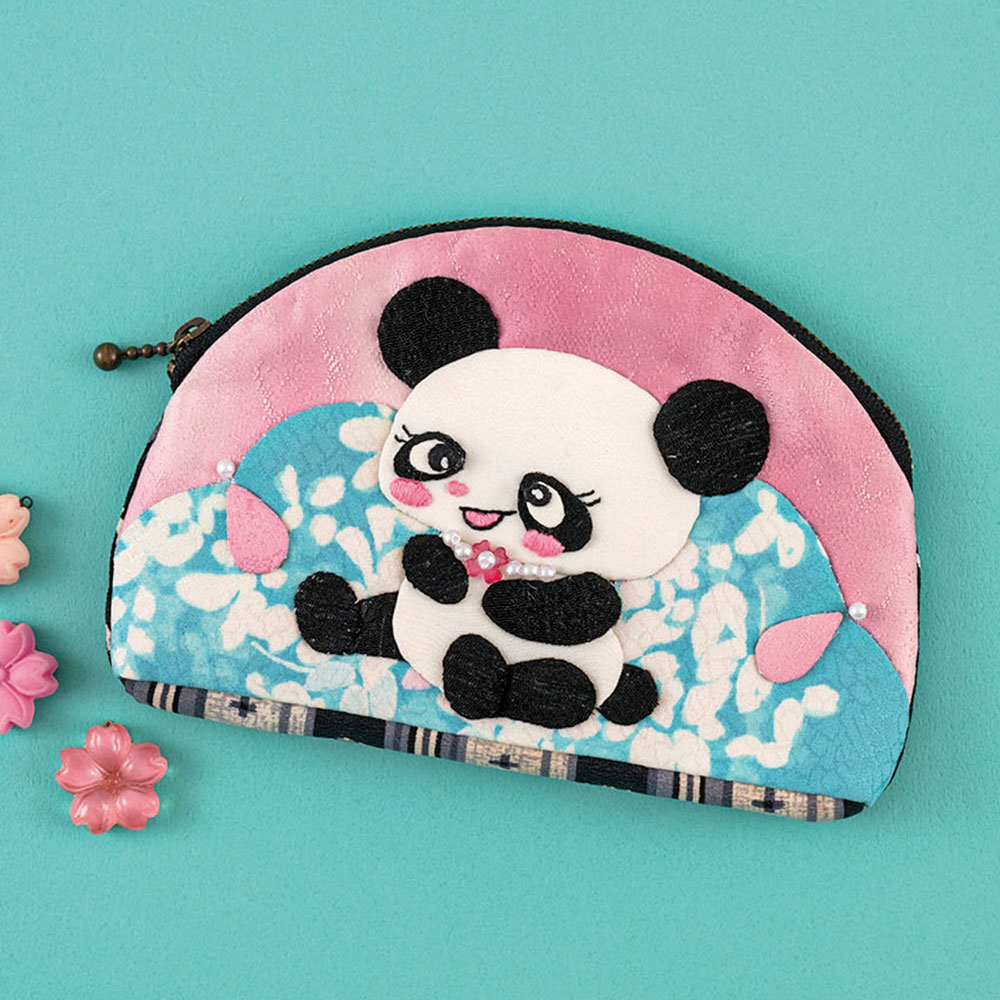 【古裂・キット作り方つき】これからも一緒に過ごせるよう、中国に帰ったパンダをポーチ仕立てに。初来日した時の雰囲気を漂わせる昭和レトロ調もポイントです。