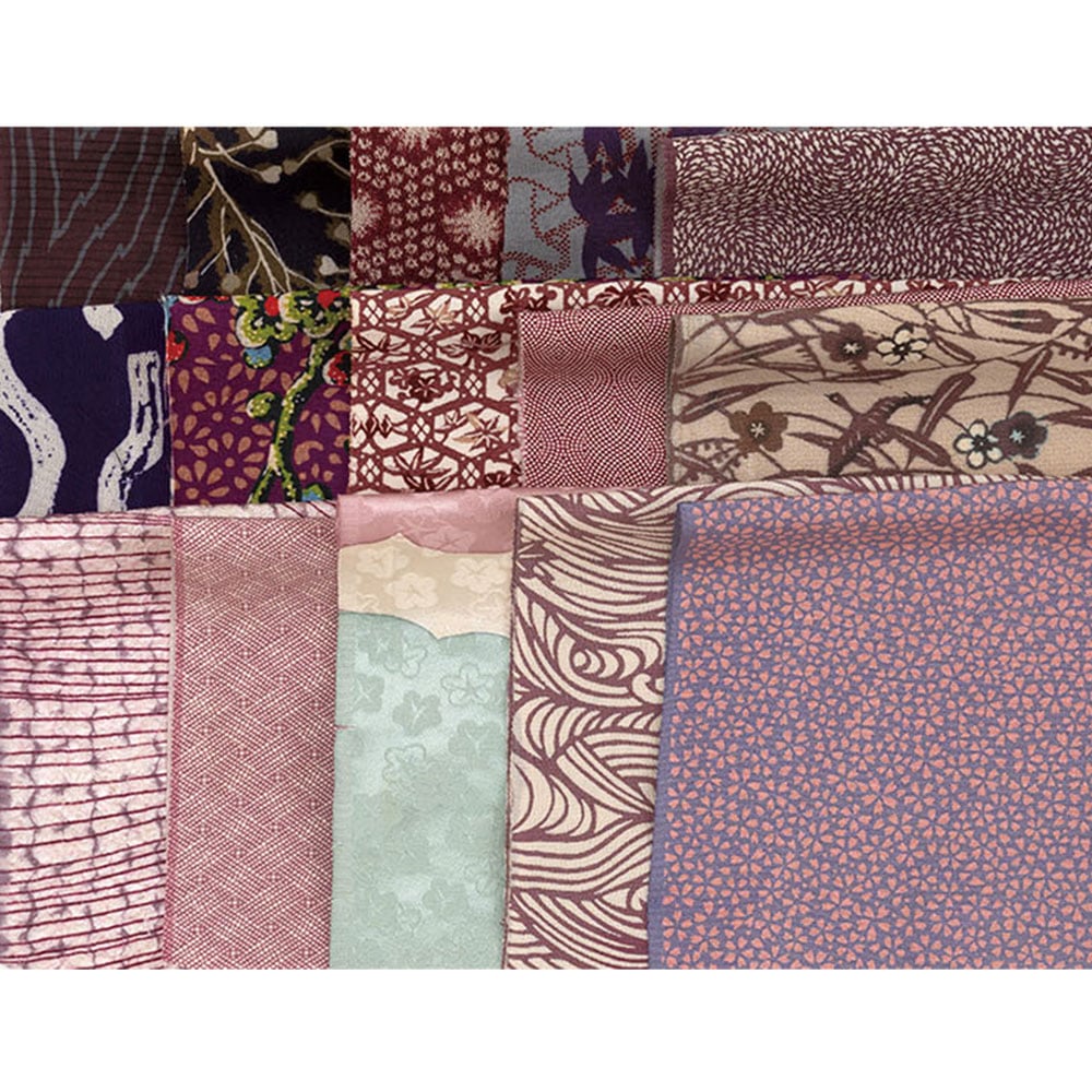 【古裂】紫やピンク系の小紋柄などを集めました。この先なかなか出てこない細かい柄がセットになっています。