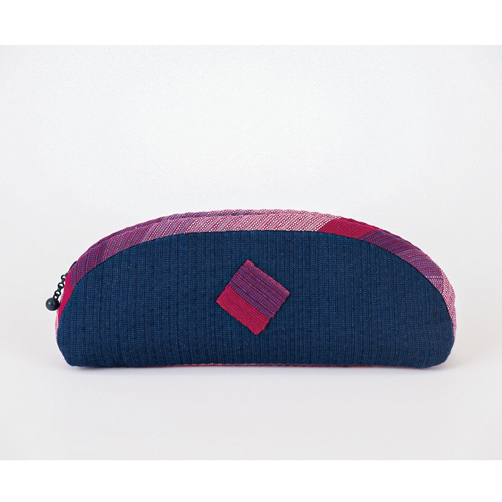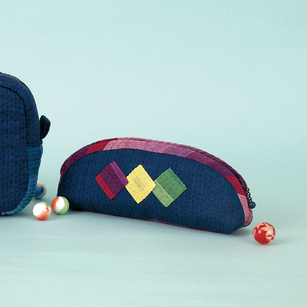 阿波しじら織四角いアップリケがついたスリムポーチ