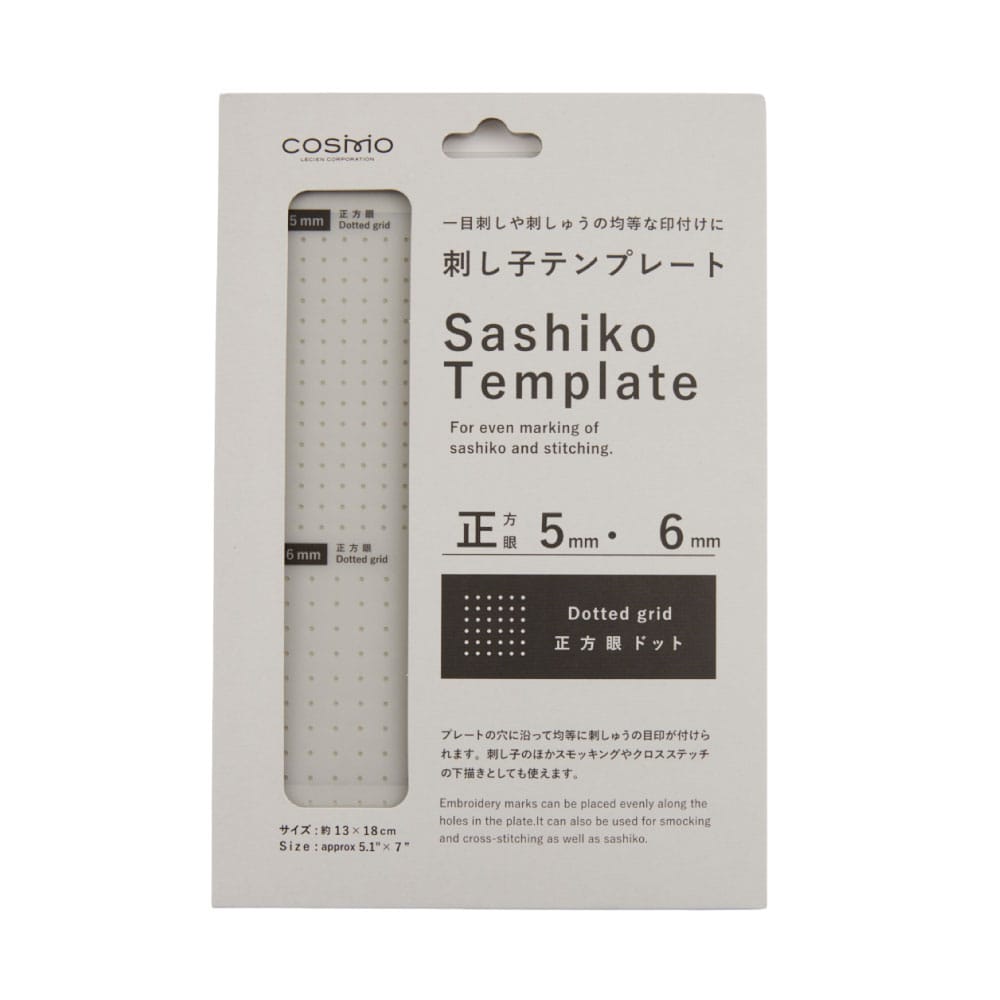 一目刺しや刺しゅうの均等な印付けに便利なプレート。プレートの穴に沿って均等にステッチの目印がつけられます。薄い半透明のシートなので、下の布が見やすく、印を付けやすくなっています。5mmと6mm間隔の穴が縦横90°の角度で均等に並んでいます。