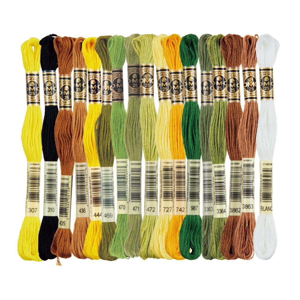 ステッチイデーvol.48 32ページの作品に使用しているDMC25番刺しゅう糸のセットです。