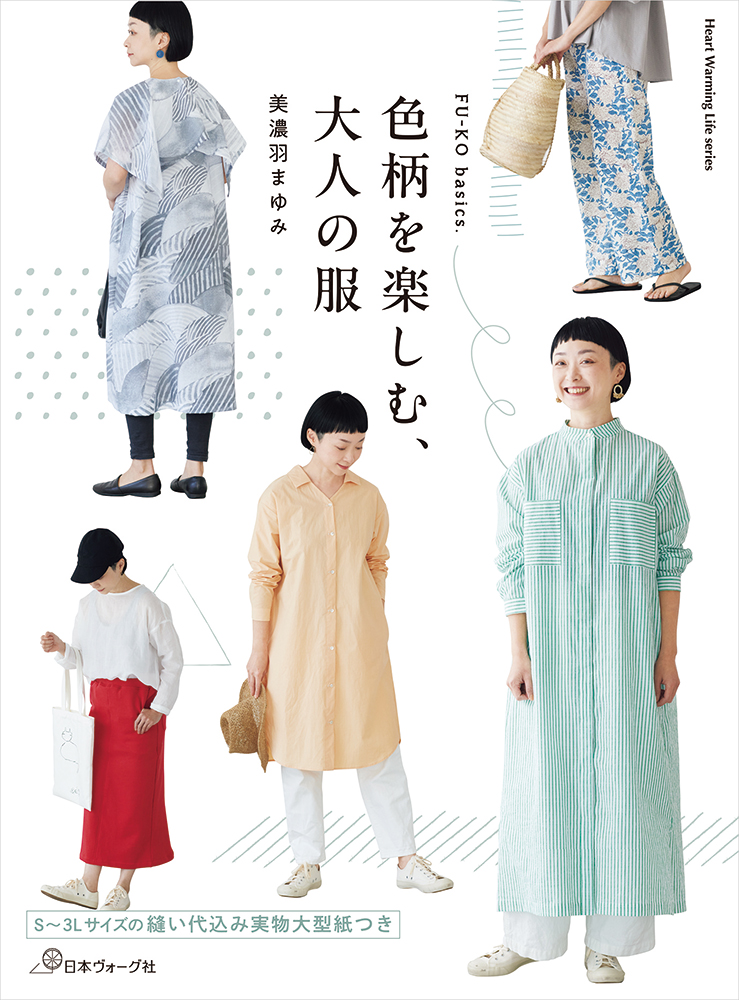 手づくり暮らし研究家美濃羽まゆみさんの新刊。素敵な色柄を活かし、自分のご機嫌を上手に取るためのデザインが揃います。色柄を着こなすためのコーディネート例もたっぷりとご紹介。毎日をちょっとうきうきさせる、手元に置いておきたい一冊です。S~3Lサイズ展開。縫い代込みの実物大型紙つき。