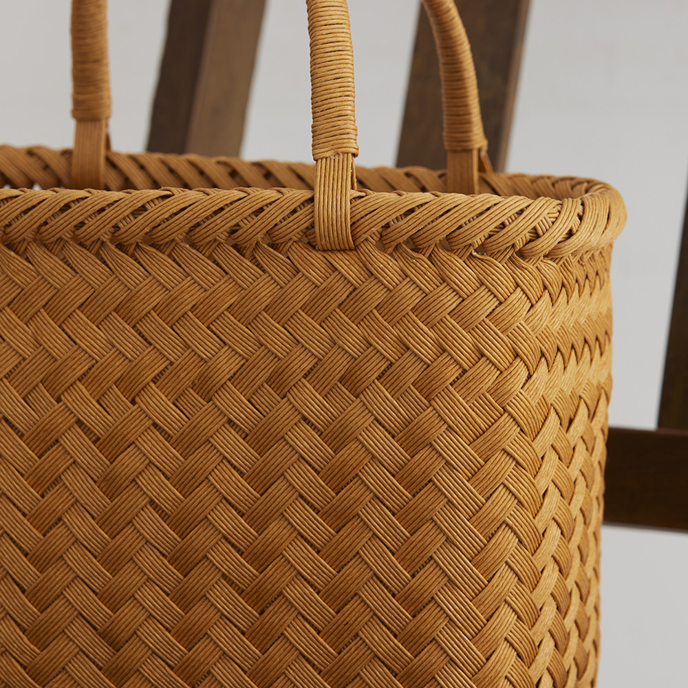 山葡萄やアケビ、竹細工のかごに使われる伝統的な編み方を、紙バンドで表現しました。