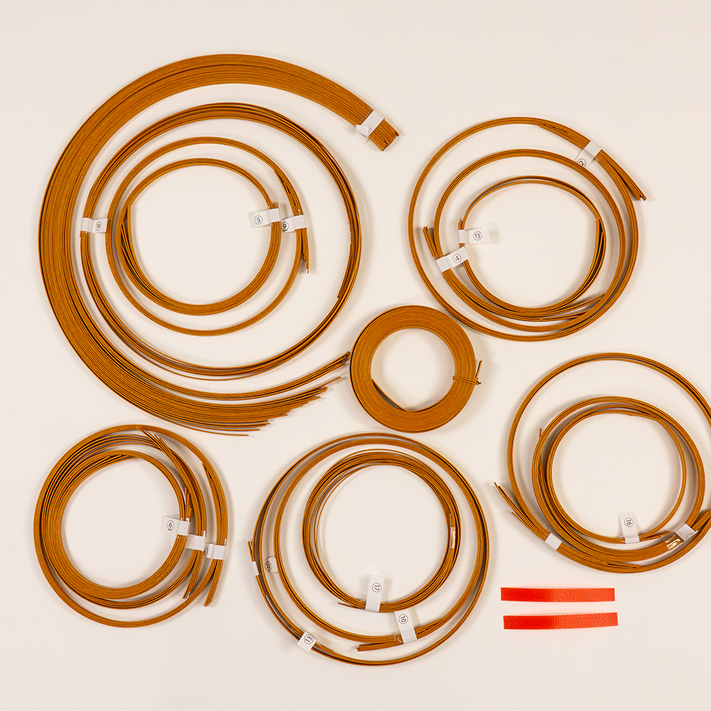 キットの紙バンドは必要な幅と長さにカットしているので、すぐに編み始めることができます。紙バンドのひもに合番がついていますので、レッスンシートの表を確認しながら制作してください。合番のついた紙バンドが足りない場合は、予備の紙バンドを使用箇所に合わせてカットしてください。