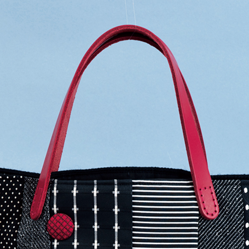 【別売り】 「8枚つなぎのバルーンバッグ」にぴったり。赤色のしっかりとした本革持ち手です。本体に直接縫いつけます。