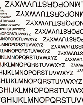 FIRST OF INFINITY(藤田久美子&中島一恵)デザイン。 アイボリー地にアルファベットのサイズがグラデーション状になっているプリント。1枚布で小物を作ったり、ボーダーにしても動きのある作品に。
