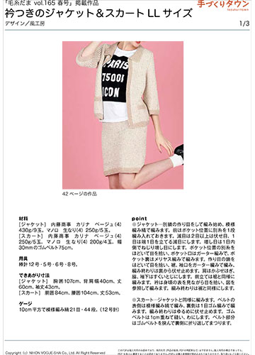 編み図【配送】 衿つきジャケット&スカート(LLサイズ)
