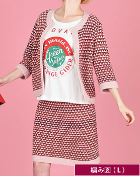 編み図【配送】 ピンクの七分袖ジャケット&スカート(Lサイズ)