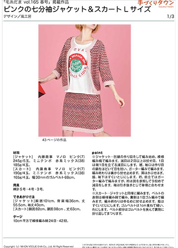 編み図【配送】 ピンクの七分袖ジャケット&スカート(Lサイズ)