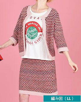 編み図【配送】 ピンクの七分袖ジャケット&スカート(LLサイズ)