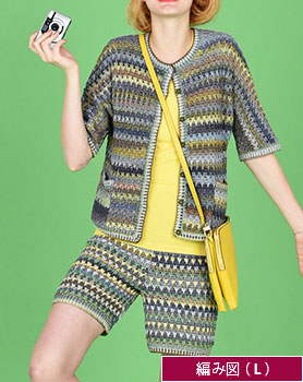 編み図【配送】 ハーフスリーブジャケット&ハーフ丈パンツ(Lサイズ)