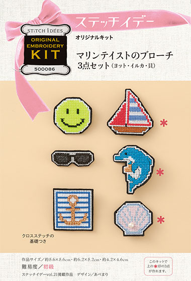ステッチイデー・オリジナルキット!あべまりさんデザインの可愛いクロスステッチのブローチが作れるキットです。