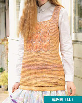編み図【配送】 黄系ミックスのノースリーブチュニック(LLサイズ)