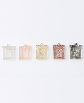 キラキラしたラメ入りのミニフレームパーツのセット。中央部分にお好みの写真やチャームを入れるなどアレンジもいろいろ楽しめます。