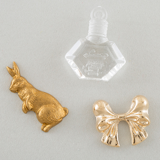 うさぎ/約24×10×3㎜、香水瓶/約19×18×7㎜、リボン/約15×17×3㎜