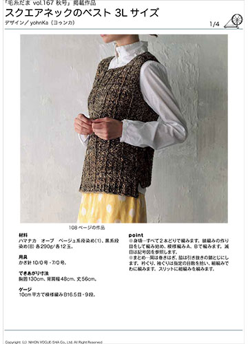 編み図【配送】 スクエアネックのベスト(3Lサイズ)