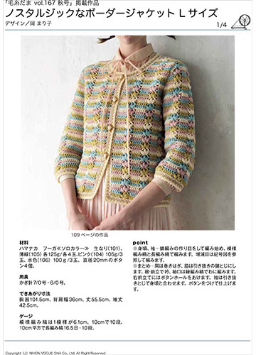 編み図【配送】 ノスタルジックなボーダージャケット(Lサイズ)