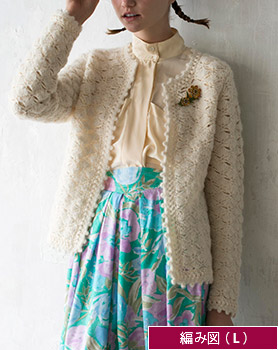 編み図【配送】 オフホワイトのロングカーディガン(Lサイズ)
