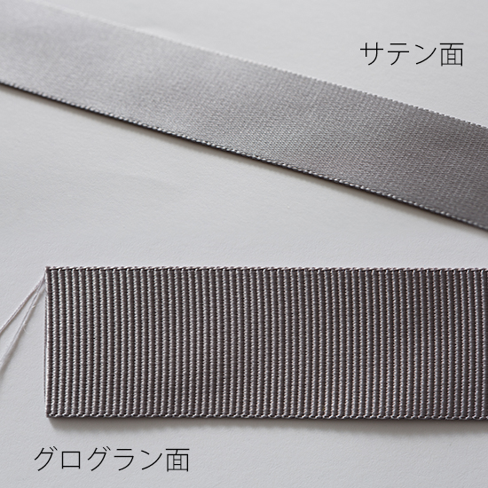 片面が光沢のあるサテン、もう片面がマットな質感のグログランの、1つで2つの表情が楽しめるおしゃれなリボン。【This item does not ship to overseas.】