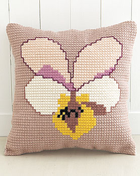 【キット作り方つき】 大きく一面に描かれたパンジーが印象的なデザインのクッション。初級の方へ。