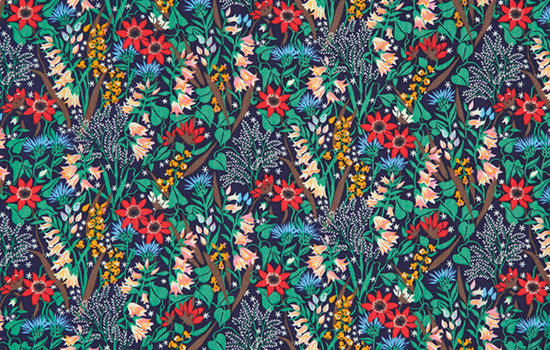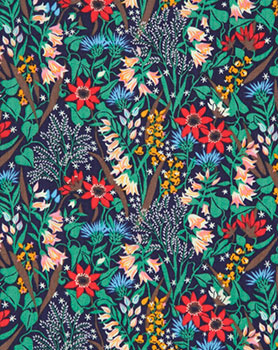 2016年春夏ヘリテージコレクション。英国リバティのアーカイブ資料から選りすぐった、フラワーデザインにフォーカスを当てたコレクションです。アーカイブの中から代表的なデザインを選び、現代版としてアレンジされています。 ネイビーの地にカラフルな花柄がおしゃれ。子供服やブックカバーなどにもおすすめ。