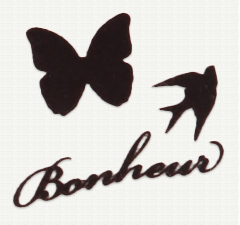 バタフライや燕、葉っぱのモチーフと英文字がデザインされたフロッキー。色は黒に近いダークブラウンです。【This item does not ship to overseas.】