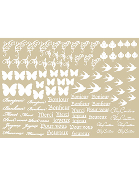 バタフライや燕、葉っぱのモチーフと英文字がデザインされたフロッキー。色は上品なベージュです。【This item does not ship to overseas.】