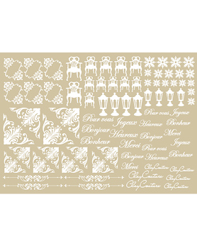 椅子や照明のインテリアモチーフと英文字や飾り罫がデザインされたフロッキー。色は上品なペールベージュです。【This item does not ship to overseas.】