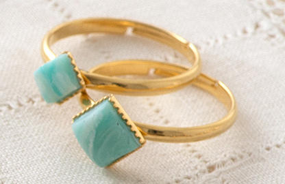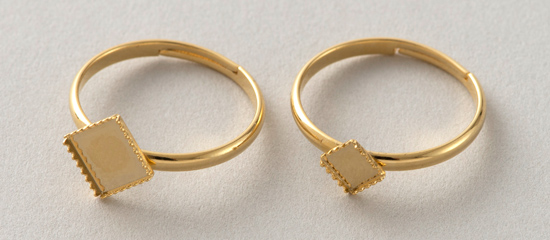 サイズ違いのひし型台座がついたリングセットです。重ねづけすると素敵です。台座にクレイを入れて、一緒に焼成することが出来ます。【This item does not ship to overseas.】
