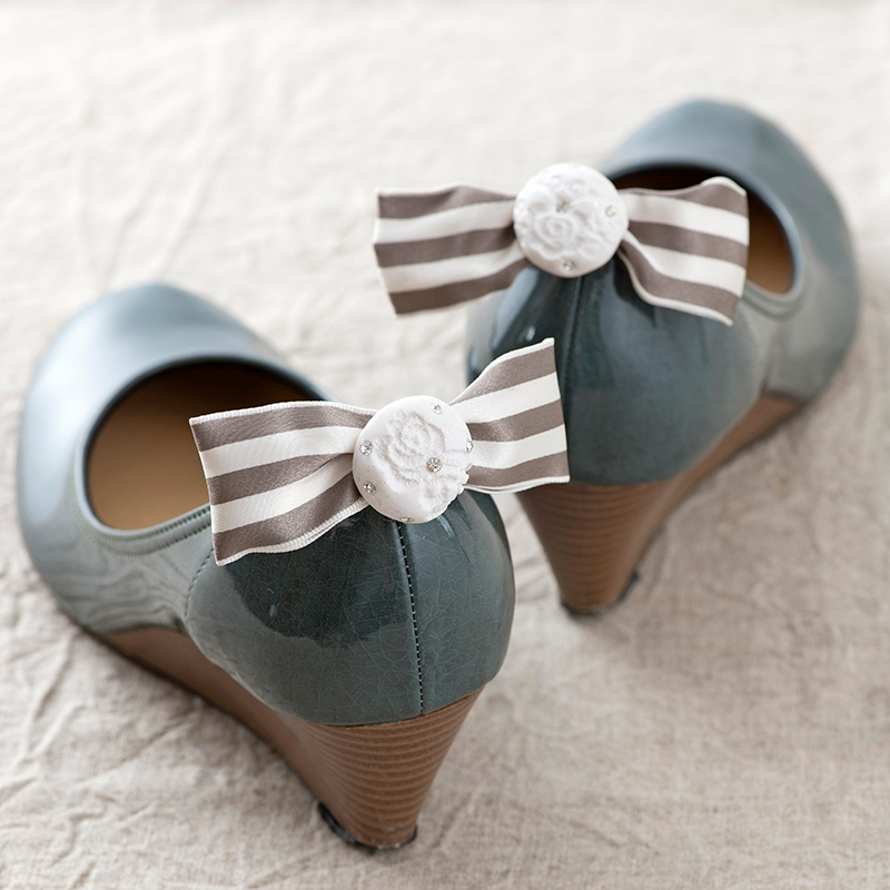 クレイ(フロストホワイトグリッター)、コンディショニングクレイ、シャワーカン、シューズクリップ、ストライプリボン、押型用ローズレース、ストーン