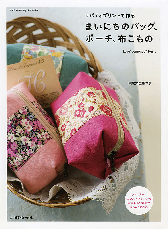 The first book by “Rei..” of “Love*Lemoned*.” Presents functional and pretty bags, pouches and wallets, among many others, made with Liberty Fabrics. Offers lots of her creative tips including how to make handmade projects beautiful. As this title provides detailed instructions on how to sew a zipper, attach a metal clasp or metallic eyelet, it will surely encourage beginners. Also contains tassels and key covers made with leftover fabrics.
