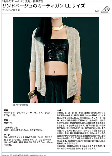 編み図【配送】 サンドベージュのカーディガン(LLサイズ)