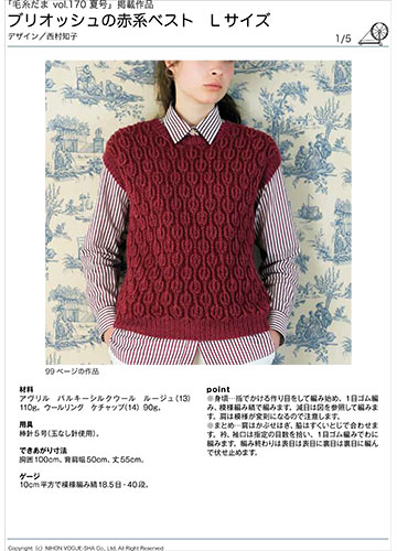 編み図【配送】 ブリオッシュ編みの赤系ベスト(Lサイズ)