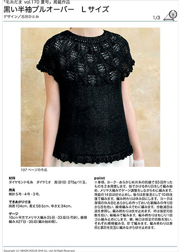 編み図【配送】 黒い半袖プルオーバー(Lサイズ)