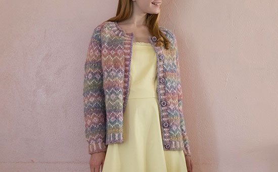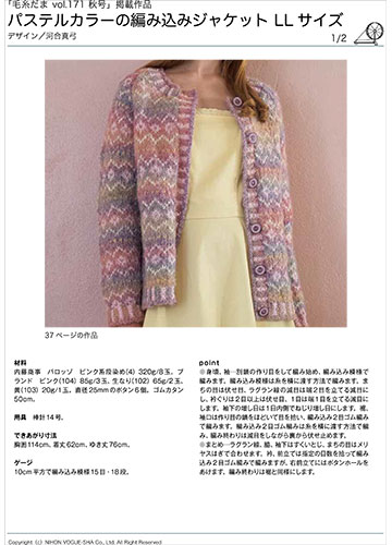 編み図【配送】 パステルカラーの編み込みジャケット(LLサイズ)