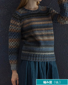 編み図【配送】トップダウンの段染めプルオーバー(LLサイズ)