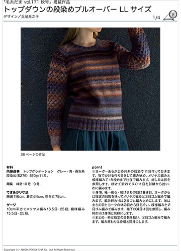 編み図【配送】トップダウンの段染めプルオーバー(LLサイズ)