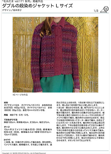 編み図【配送】 ダブルの段染めジャケット(Lサイズ)
