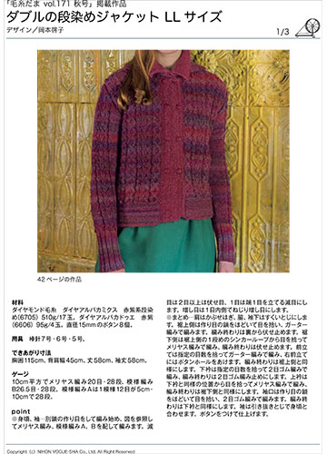 編み図【配送】 ダブルの段染めジャケット(LLサイズ)