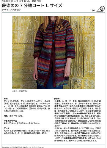 編み図【配送】 段染めの7分袖コート(Lサイズ)
