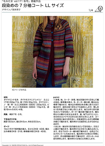 編み図【配送】 段染めの7分袖コート(LLサイズ)