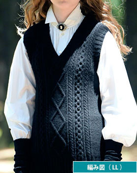編み図【配送】 黒のアラン模様ベスト(LLサイズ)
