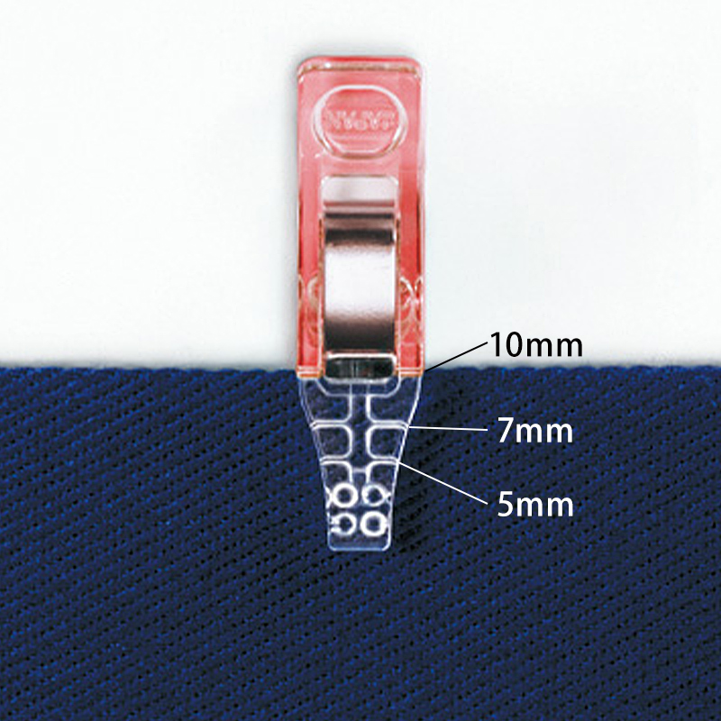 ピンポイントで止めることができる先細タイプの仮止めクリップ。普通地や薄手の生地や、まち針で止めにくいチュールやオーガンジーの仮止めに もお勧めです。