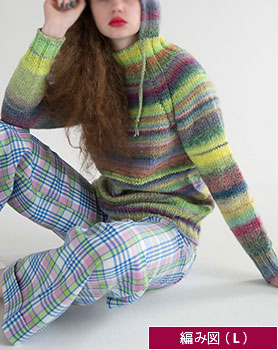 編み図【配送】 黄緑系のフード付きプルオーバー(Lサイズ)