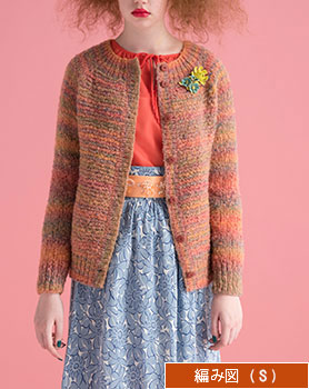 編み図【配送】 オレンジ系ミックス糸のカーディガン(Sサイズ)