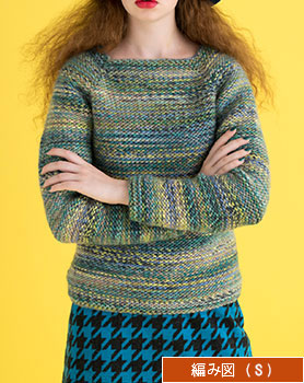 編み図【配送】 緑系ミックス糸のトップダウンプルオーバー(Sサイズ)