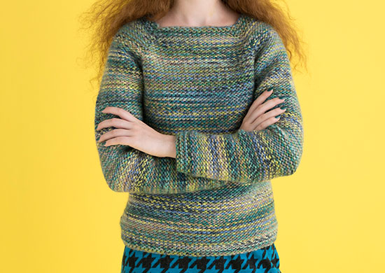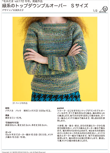 編み図【配送】 緑系ミックス糸のトップダウンプルオーバー(Sサイズ)