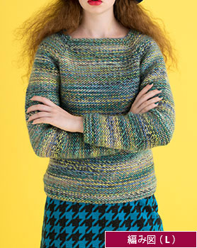 編み図【配送】 緑系ミックス糸のトップダウンプルオーバー(Lサイズ)