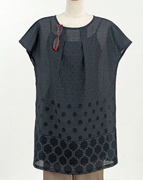 【キット作り方つき】【限定60】 コットンとシルク混紡の透け感が涼やかな紺色チュニックです。ウォッシャブル加工を施しているので手洗いできます。